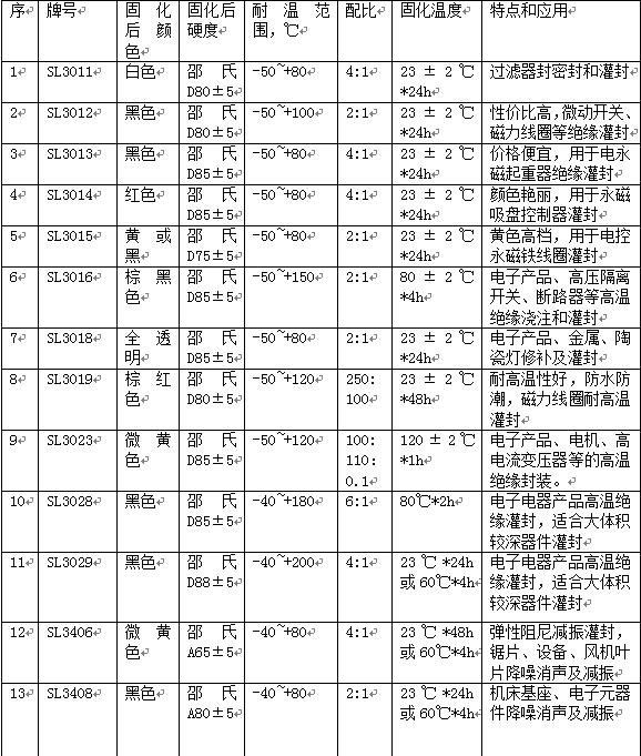 通過上表我們對于絕緣灌封膠的有了初步的了解,所以在做灌封膠的選擇時(shí)就會(huì)更懂得如何分辨,也知道耐溫等級,以及固化后的硬度是關(guān)鍵,另外還要根據(jù)每個(gè)工廠實(shí)際的可以固化的操作工藝來選擇,如果不清楚也可以直接與世林的工程技術(shù)人員咨詢:0731-28612221。