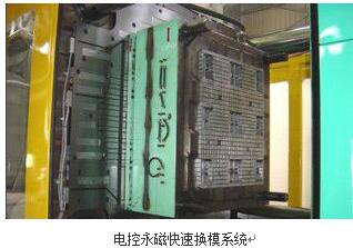 電控永磁快速換模系統(tǒng)主要是針對傳統(tǒng)注塑機(jī)、沖床、合模機(jī)裝夾模具時(shí)間長,操作復(fù)雜,安全性低而設(shè)計(jì)的,該系統(tǒng)采用電控永磁模板及動(dòng)模板,只需經(jīng)過簡單的充退磁動(dòng)作,就能裝夾和更換模具,真正做到3分鐘換模,它既可以安裝到新機(jī)中,作為標(biāo)準(zhǔn)配置銷售給終客戶,也可以對正在使用機(jī)臺(tái)進(jìn)行改造,使傳統(tǒng)機(jī)臺(tái)具有3分鐘快速換模功能而不會(huì)改變原來機(jī)臺(tái)的結(jié)構(gòu),即實(shí)用又方便。那么