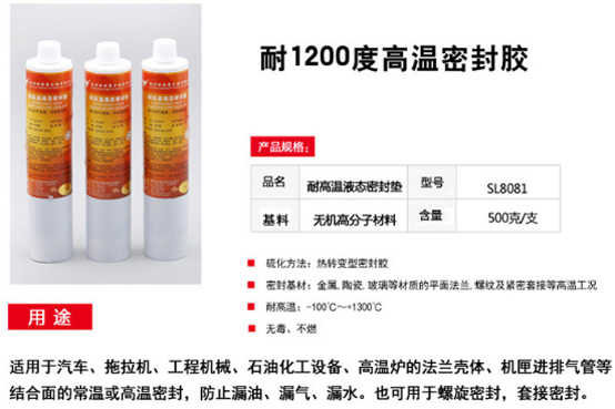 株洲世林聚合物有限公司有一款SL8081高溫密封墊(密封膠)其工作溫度從-100℃~+1200℃,短時能耐+1300℃。其性能與英SQ2高溫密封劑相當(dāng)。它具有優(yōu)異的耐超高溫、阻燃、耐老化、耐酸堿等性能;滿足一般膠粘劑無法解決的高溫設(shè)備的密封、填補、灌封、修補和膠接等難題