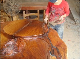 大板(柚木、花梨木、雞翅木、檀木等)在修補(bǔ)前,首先應(yīng)將大板里的水分風(fēng)干,好把木材內(nèi)的含水量控制在6%-12%之內(nèi),并且要將有縫隙和裂紋處的泥沙木屑清理干凈再進(jìn)行灌膠或涂膠修補(bǔ),如果裂縫處底部是相通的,則需要將底部先堵住,待補(bǔ)完膠再打磨掉。這樣修補(bǔ)出來(lái)的成品才相當(dāng)平整和美觀.