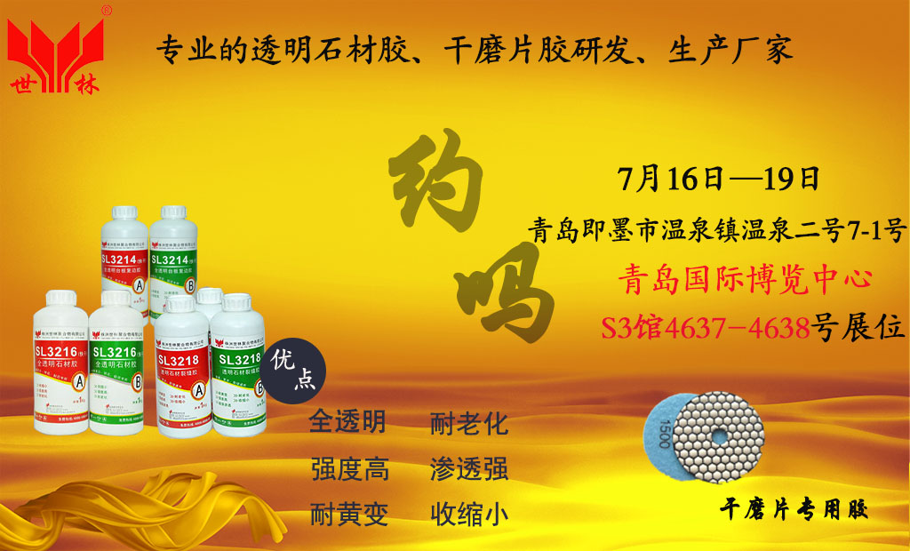 世林膠業(yè)參加了2016年青島石材展會(huì),展會(huì)時(shí)間:2016年7月16-7月19日,展會(huì)地點(diǎn):青島國際博覽中心S3館4637-4638號展位。